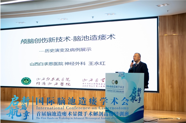 作为此次活动的组织者,王永红教授在此次会议上,对脑池造瘘术的发展历史及其创立者Iype教授的情况进行了介绍,并就脑池造瘘术的优势,以及脑池造瘘术与去骨瓣减压术的差别,进行了详细讲解。