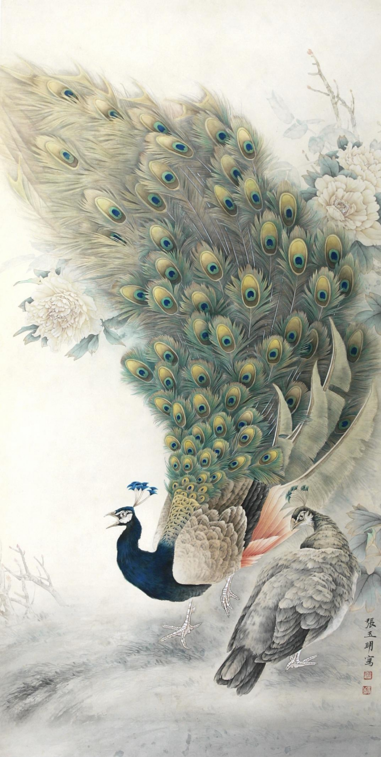 这份“不满意”,是对艺术本质的执着而非对技艺的苛责。工笔花鸟自唐宋便是传统绘画瑰宝,秉持“外师造化,中得心源”,既需笔法精细,更重情感精神注入。张玉明深谙此道,其孔雀图绝非形态复刻,而是将对生命的敬畏、对自然的热爱凝于笔端——颈羽润泽如凝露,尾羽舒展似流云,每根翎羽皆透着“活”的气息。这份对“意”的坚守,正是对传统文脉的虔诚传承。在快节奏当下,他以慢工细作对抗浮躁,守护工笔花鸟“以形传神、形神兼备”的艺术内核,这是当代艺术家对传统技艺最质朴的担当。