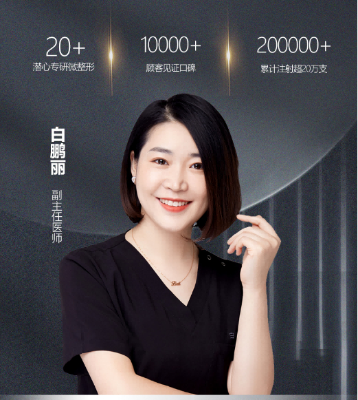白鹏丽院长拥有二十余年医疗美容临床经验。她始终坚持“医学为本、美容为形”的理念,将严谨的医学态度与前沿的美学理念完美结合。