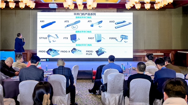 全天议程的核心板块集中于产品特色选型与案例拆解。喀美资深技术专家滕志明就CAME自动平移门、自动平开门及庭院门机等核心产品线,进行了系统性的选型指导与应用解析。讲解不仅涵盖技术参数,更结合了典型的实际案例分享,将产品特性置于具体的项目场景中剖析,帮助伙伴深入理解如何为客户匹配最优解决方案。