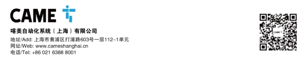 如需了解更多产品信息,请访问喀美CAME官网www.cameshanghai.cn或关注微信服务号“CAME喀美”,也可致电021-6388 8001或发送邮件至Contact@CameShanghai.cn。