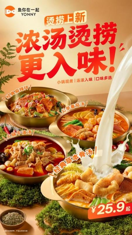 烫捞是一种以特色汤底为基础,搭配多类食材现“烫”现“捞”的品质快餐形式,兼具火锅的社交属性与快餐的便捷性。鱼你在一起烫捞系列精准匹配聚餐、一人食快餐、减脂人群等不同人群与消费场景,实现“单品精准卡位,组合覆盖全域”的布局目标。