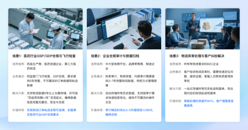 比如,医药行业依据《药品经营质量管理规范》(GSP),要求提供5年完整、不可篡改的订单数据和轨迹数据;在电商行业,根据《电子商务法》规定,交易及履约相关数据(包括物流信息)需保存不少于3年,用于税务稽查、消费者维权及平台合规审计。