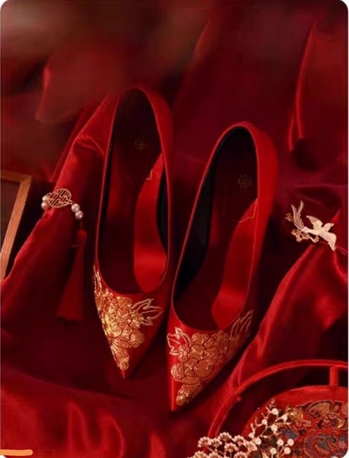 中式婚嫁礼服讲究整体和谐,婚鞋的选择需在色彩、材质与纹样上与礼服形成呼应。