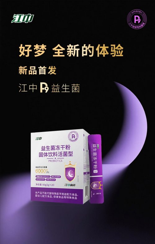 作为深耕国人健康的国民品牌,江中精准洞察“肠道-睡眠”关联的健康需求,依托国家级研发平台和在胃肠健康领域的深厚积淀,创新性地打造三生元配方,将益生菌+后生元+药食同源进行科学配伍,推出P9益生菌冻干粉系列新品。