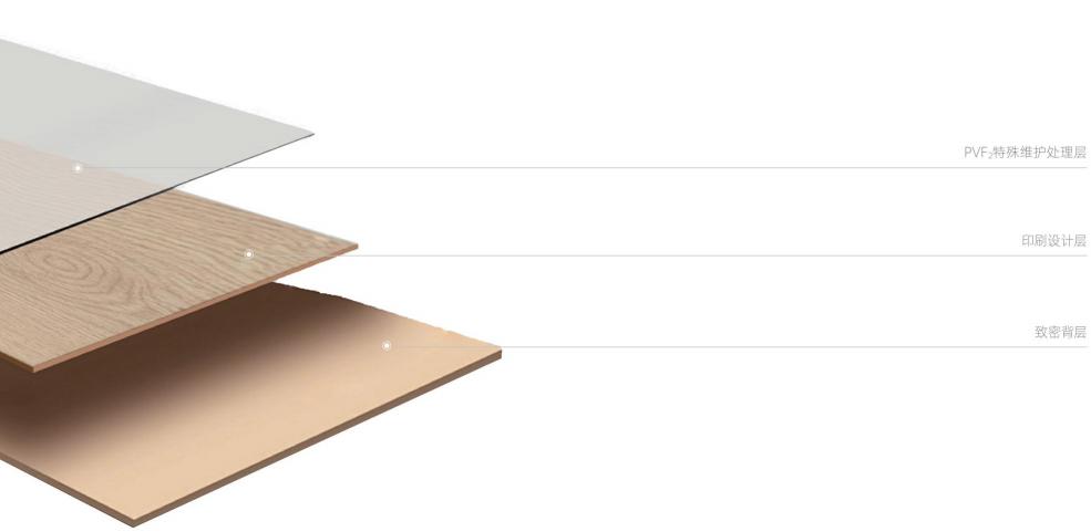卓士高运用PVF₂特性面材实现金属复合板功能与美感的有效结合。实际测试数据表明,采用PVF2特性面材的金属复合板产品,在经过长时间使用后,其颜色与光泽的保持率远超常规涂层标准。