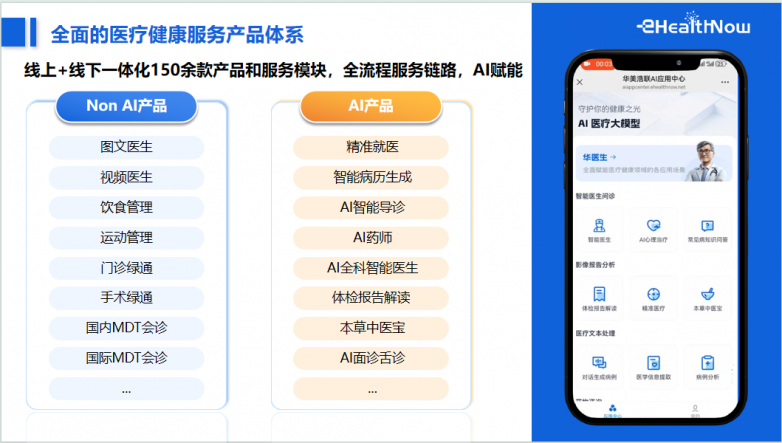 作为一站式人工智能数字化医疗健康服务平台,华美浩联的入选源于“技术深耕 + 资源整合 + 商业落地”的硬实力积淀。在技术层面,公司以“华医生 Dr.Hua”AI 智能体为技术核心,完成从“单点赋能”到“全流程生态协同”的跨越。通过构建覆盖健康测评、AI 体检报告解读、精准就医匹配、慢性病康复管理的全周期服务体系,AI 依据用户地理位置、病情需求、保险权益自动匹配优质的医疗资源,还能合规输出健康数据,助力合作保险公司设计例如中老年定制医疗险、齿科专项险等精准产品,形成“医疗 - 保险 - 用户”三方价值闭环。