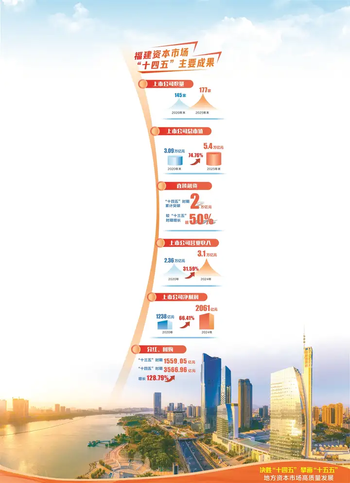 过去五年,福建省资本市场直接融资累计突破2万亿元,较“十三五”时期增长超五成,资本市场服务实体经济的“输血”功能持续凸显。