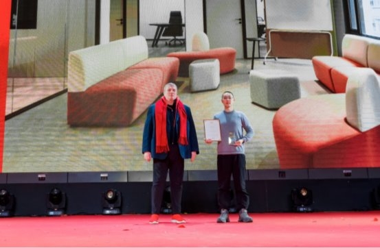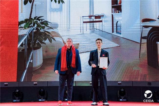 为到场言昱设计事务所·私宅定制公司代表颁发金创意国际空间设计大赛-金奖;