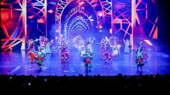 演出由约特干故城艺术团与北京演艺集团联合打造,以“丝路华章・文明根脉”“千年回响・深情寄望”“京和同心・共筑辉煌”三个主题篇章串联:开场舞蹈《凤鸣开城,迎宾热舞》沉浸式再现古于阗迎宾盛景;《时空回想》《一封家书》讲述从古至今保家卫国、援助边疆的庄严承诺与伟大奉献;融合多民族舞蹈元素的《麦西来甫》则营造出团结欢聚的热烈氛围……整场演出不仅是视听盛宴,更承载着和田地区和兵团十四师各族人民对党中央亲切关怀的无限感恩、对北京亲人无私援助的由衷谢意,是京和两地血脉相连、文化交融、手足相亲的生动写照。