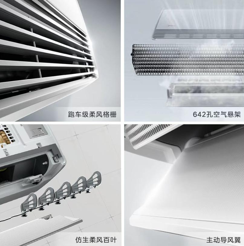 健康防护上,产品构建全维度体系,让每次呼吸都安心:99.9%抗菌防霉疏水滤网抑制细菌滋生,疏水涂层让油污灰尘一冲即净;格栅与导风翼可快速拆洗,搭配56℃高温智清洁技术,解决传统空调藏污纳垢、清洗困难的痛点,就算是换季久置后开机,吹出来的风依然清新如初。