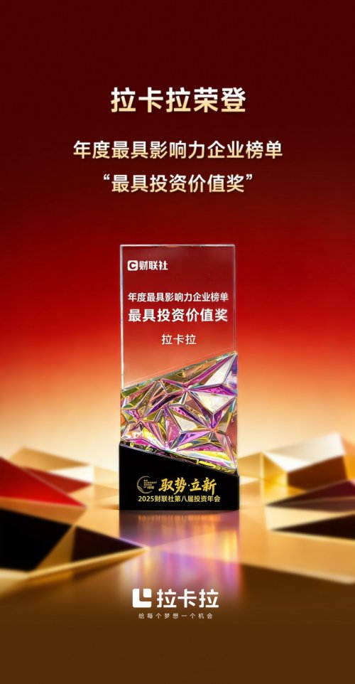 近日,2025财联社第八届投资年会暨科大硅谷硬科技投资生态大会在安徽落幕。会上,第八届投资年会“资本市场最具价值影响力榜单”正式揭晓,拉卡拉支付股份有限公司(下称“拉卡拉”)凭借扎实的业绩根基、清晰的成长脉络及持续释放的市场潜力,成功斩获年度最具影响力企业榜单中的“最具投资价值奖”。