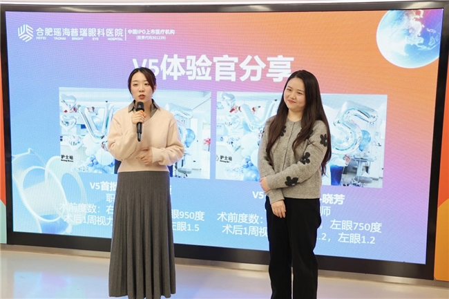 前沿技术的价值,最终体现在患者的真实体验中。发布会邀请到了此前在我院接受首批V5晶体植入手术的两名患者,她们在现场分享了手术的亲身感受。“手术的效果超乎预期,相较于之前的框架眼镜、隐形眼镜,晶体植入手术后的视觉质量要更加高清。”两位患者的真诚分享,让现场观众直观感受到了V5晶体的卓越效果。