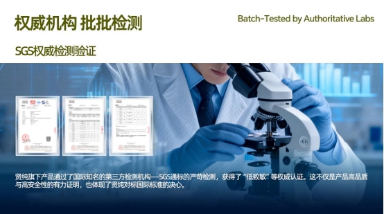 在安全标准上,贤纯建立了60项产品质量控制标准,实现原料全链路溯源。同时,品牌与SGS、华测(CTI)等权威机构建立长期合作,确保每一批次产品都能匹配“国宝之准”的品质承诺。