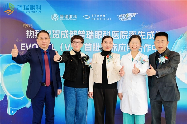 1月17日,成都普瑞眼科医院举办新一代ICL晶体EVO+ICL (V5)专家见面会。会上,STAAR Surgical公司正式授予成都普瑞眼科医院“EVO+ICL (V5)首批临床应用合作中心”牌匾,成都普瑞眼科在高端近视矫正领域的技术实力再上新台阶。STAAR Surgical公司云贵川区域销售经理林旺,成都普瑞眼科医院院长艾碧君、成都普瑞眼科医院执行院长李晓春,成都普瑞眼科医院副院长、屈光手术中心主任周继容,屈光手术中心副主任熊雯等出席活动。