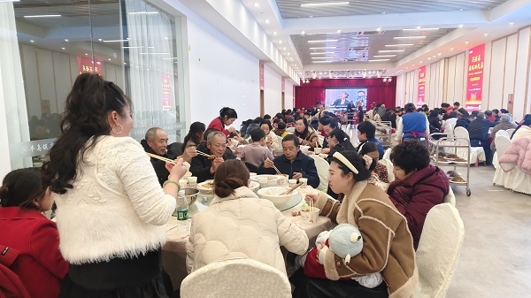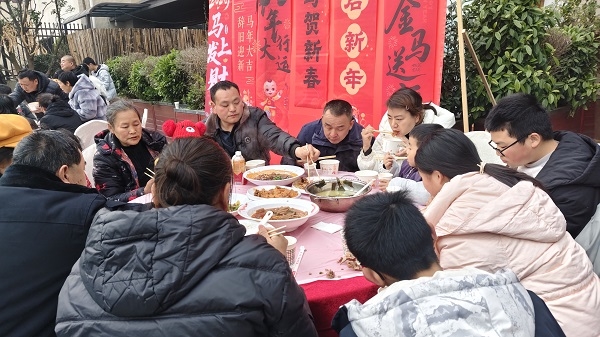 趣味互动过后,万众期待的刨汤盛宴正式开席。这道承载着川东北民俗记忆的美食,在寒冬里为大家带来了最暖心的烟火气。新鲜的猪肉、猪血、猪肝、猪肠等食材码放整齐,逐一入锅后,与姜片、葱段、酸菜一同慢炖,浓郁的肉香弥漫全场,引得现场嘉宾频频探头,食欲大开。工作人员身着统一服装,有条不紊地为大家盛汤、分菜,瓷碗碰撞的清脆声响与大家的畅谈声交织在一起。闻讯赶来的市民与网友们围坐在临时搭建的餐桌旁,土家风味的刨汤口感醇厚、鲜香不腻,搭配爽口的配菜,每一口都是地道的家乡味。席间大家推杯换盏、谈笑风生,陌生的邻里因美食结缘,熟络的亲友围坐畅谈,满场都是温情满满的烟火气息。