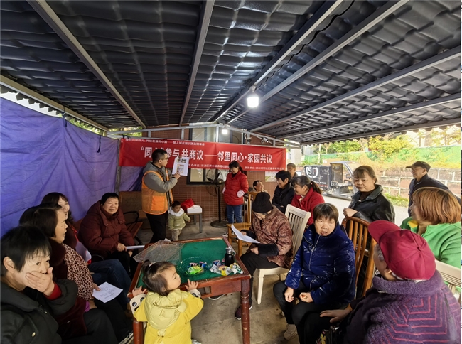 项目启动前,社区社工通过线下坝坝会、入户走访等形式,广泛收集居民对公共空间改造的意见建议。经梳理,居民普遍希望能有一个兼具议事、调解、交流、休闲功能的综合性场所。基于此,社区明确将“瞿上·同心亭”定位为“功能复合、服务多元、贴近需求”的网格共享阵地,确保空间建设真正回应群众期盼。