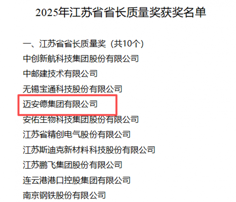 迈安德作为深耕该领域的领军企业,凭借自主核心技术打造的高盐废水蒸发器,为企业提供了合规、高效、可持续的废盐处理解决方案,成为行业转型进程中的关键支撑。近日,集团还荣获了2025江苏省省长质量奖,更以权威认可印证了其在品质管控与技术创新等多维度的综合实力。
