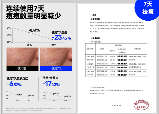第三方真人实测数据提供了有力支撑:连续使用7天后,祛痘祛红祛黑头效果显著
