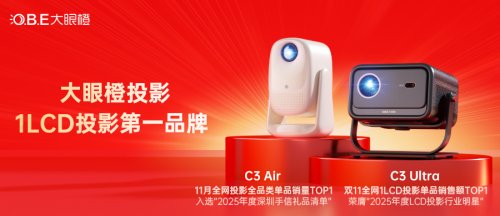 行业竞争逻辑已从单纯的价格战转向价值战。大眼橙已凭借实打实的市场表现,确立了1LCD赛道“破局者”与“引领者”的双重地位。销售数据是最直接的证明:2025年双11期间,大眼橙C3 Ultra斩获全网1LCD单品销售额 TOP1,现象级爆款大眼橙C3 Air以月销突破3万台的成绩,拿下11月智能投影全品类畅销单品销量冠军。洛图科技报告显示,大眼橙不仅成功登顶1LCD品类销售额榜首,更以单品突围打破了全品类市场的竞争格局。