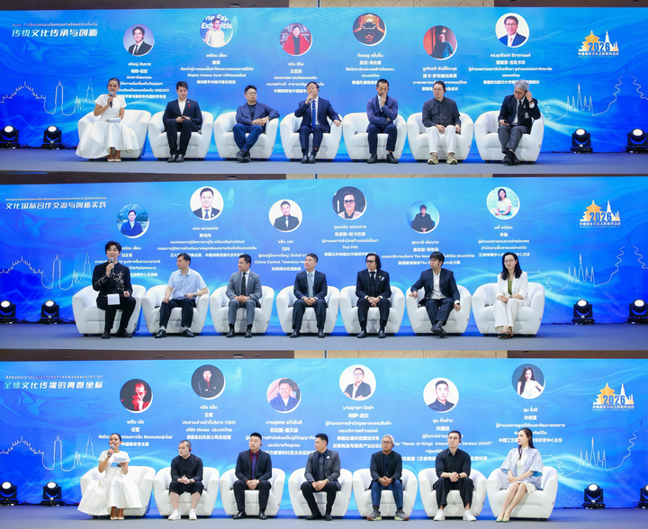 泰国总理府、文化部、内政部、黎明寺申遗团队、电影协会、正大集团、孔剧艺术家、公共电视台Thai PBS等机构负责人与央视网、河南大象国际传播中心、腾讯数字中轴、王者荣耀国际版(AOV)、名创优品、中国画大师王西京、青年艺术家任哲,围绕非遗保护、文化创意产业发展、影视国际合作、网文网游网剧“出海”等进行圆桌对话。活动通过网络平台直播,超过233万观众在线观看,精彩短视频全网浏览量达1221.6万次。