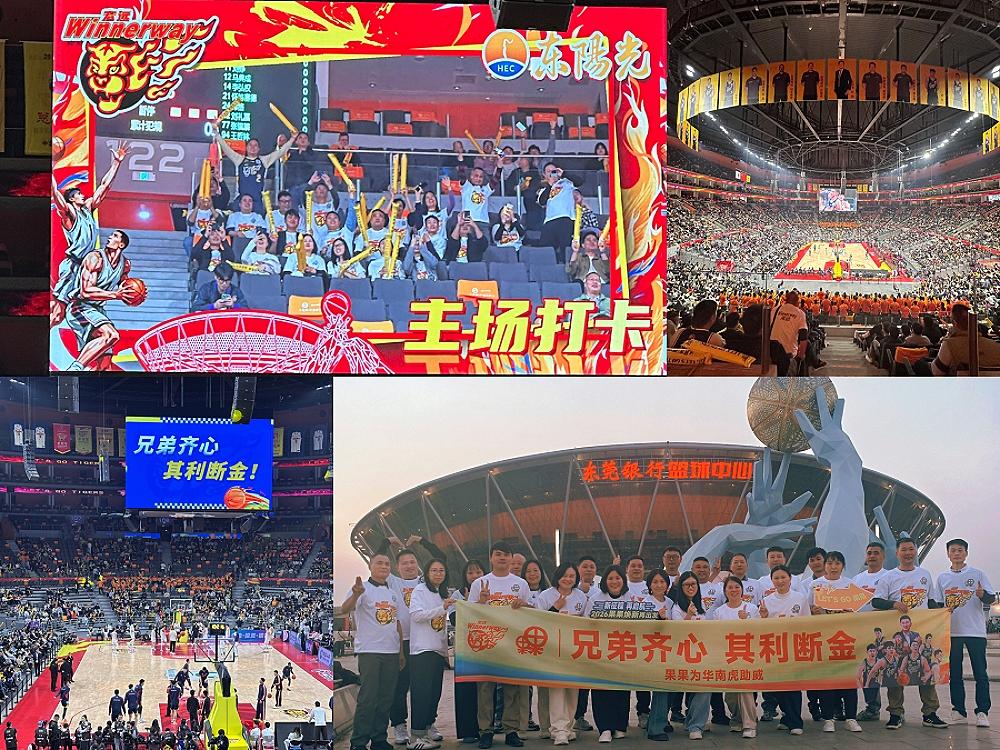 1月15日晚,东莞篮球中心灯火璀璨、人声鼎沸,2025-2026赛季CBA广东宏远主场迎战上海队的对决在此上演。作为CBA十一冠王广东宏远华南虎俱乐部的推荐品牌,“果果”营销团队身着统一服装组成专属助威团,用嘹亮的呐喊为“华南虎”加油助威。赛场内,球员们奋勇拼搏、默契配合的竞技精神,与“兄弟齐心 其利断金”的团队理念同频共振。这份跨越运动竞技与医药健康领域的精神共鸣,不仅让远道归来的营销将士们感受到“回家”的温暖,更将永不言败、团结协作的冠军精神融入企业和品牌发展血脉,为后续的年度会议注入强劲动力。