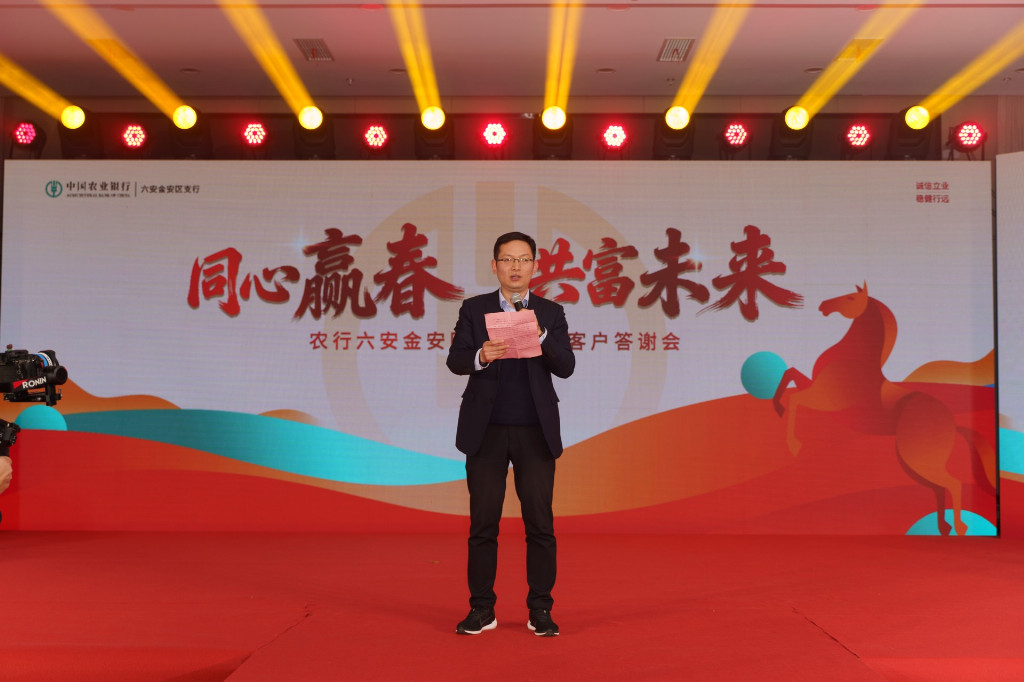 任尔天寒地冻,我自热情似火。为积极做好2026年“春天行动”营销活动,夯实客户管理基础,2026年1月16日,农行六安金安区支行举办了以“同心赢春,共富未来”为主题的贵宾客户答谢会。受邀贵宾客户和嘉宾欢聚一堂,赏莺歌燕舞,共叙银客深情。
