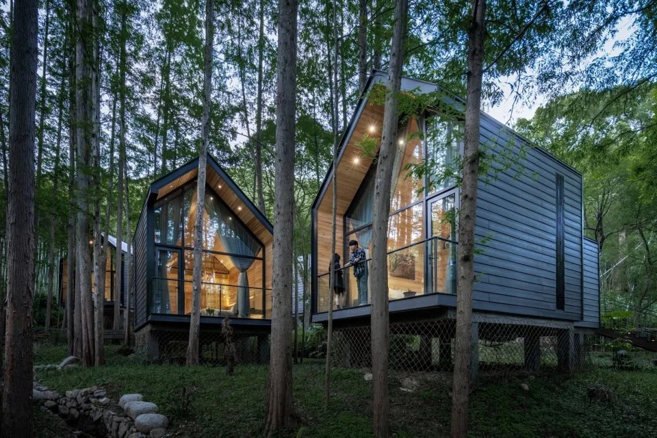 此外值得一提的是,智木艺墅的创新实践并未局限在乡村别墅领域。其将装配式木结构的灵活性发挥到极致,产品应用覆盖大型公建、旅居民宿、景观小品等,展现了在多元场景下的强大适应性、独特价值与广泛的应用潜力。