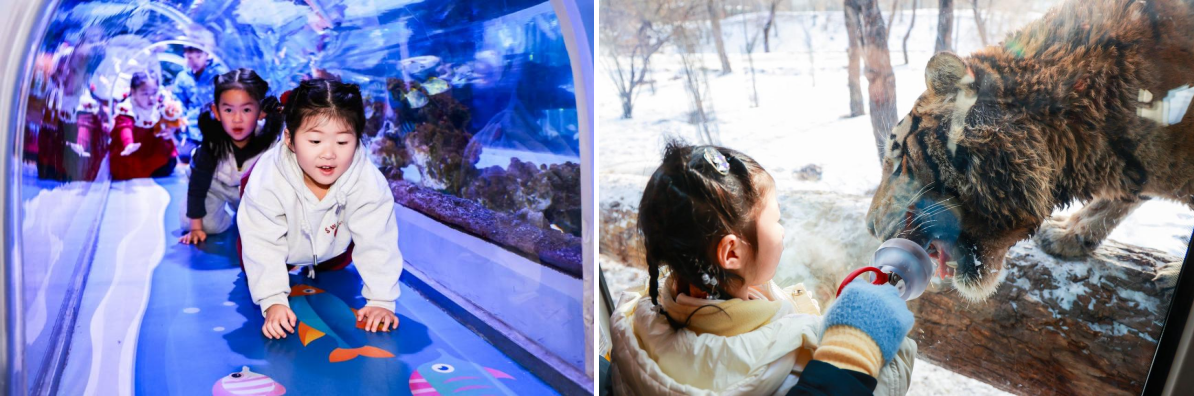 本次跨年游精心设计了富有教育意义的东北冬日特色研学路线。会员家庭在极地馆邂逅来自寒冷地带的“研学企鹅”,在东北虎林园探寻“百兽之王”的起源与保护故事,在行走的课堂中感受生命与生态的奥秘。漫步百年历史的中央大街,并在飞鹤牧场体验店品味源自北纬47°的醇香,将城市人文之旅与品牌源头探寻巧妙结合,提升了旅行的研学属性与飞鹤品牌关联。