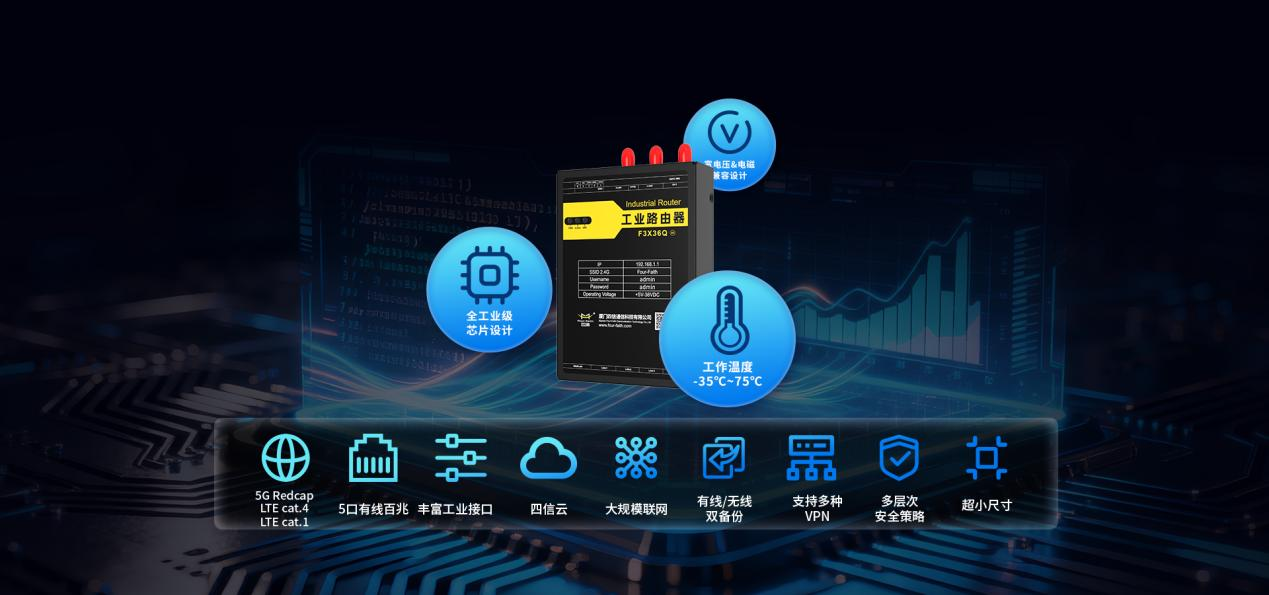 四信F3X36Q-01是一款面向严苛工业环境设计的多网口工业级路由器。采用轻量化5G RedCap通信模组,在实现高速、低延迟数据传输的同时,具备优异的性价比。