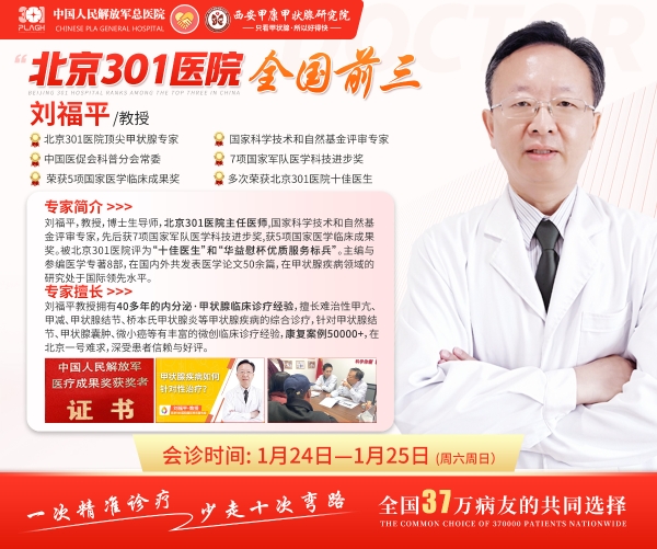 本次会诊由北京301医院十佳医生刘福平教授领衔。刘福平教授作为博士生导师、国家科学技术与自然基金评审专家,在甲状腺疾病领域深耕40余年,临床与科研成就卓著,曾获多项国家及军队医学进步奖,发表学术论文50余篇,康复案例超过50000例,其专业水平在国际甲状腺学界享有盛誉。此外,会诊团队还包括国家肿瘤微创特聘专家高伟教授、西安甲康副院长张杰、北京名医工作室组长张新亮、上海李三主任及科研主任江勇等多位中西医结合专家,形成多学科、高层次的医疗协作阵容。