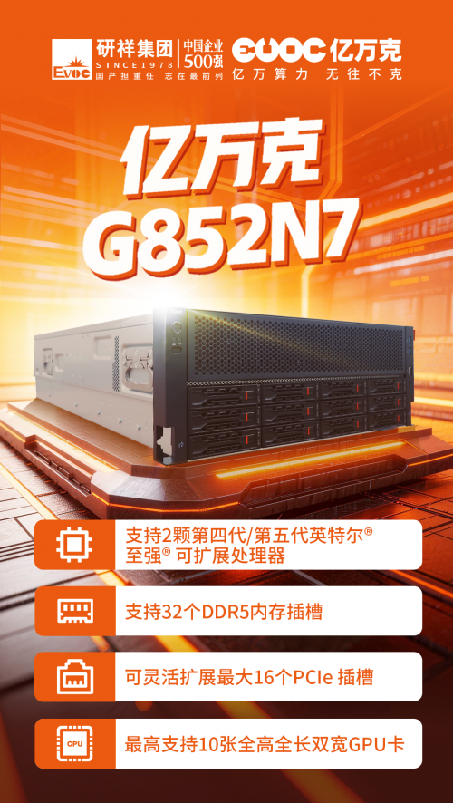 亿万克G852N7服务器:支持多种CPU-GPU以及GPU-GPU互联拓扑,为高性能计算提供全方位的性能支持,兼容市面主流GPU类型,满足客户不同应用场景。