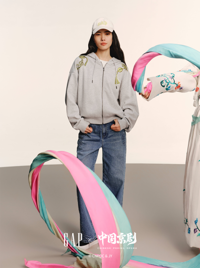此次GAP携手“中国京剧”IP打造新春联名限定系列,深耕新年的自我期待和情绪需求,围绕“开运、团聚、成功、律动、成长”五大新年吉祥祈愿内核,把《天官赐福》《龙凤呈祥》等经典剧目融入产品、场景与体验中。将传统戏曲元素融入现代风格,在东方经典美学中注入日常轮廓,用传承的针脚打造出承载文化祝福的新年吉服。