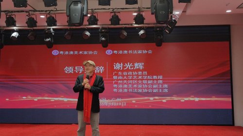 中国书法家协会会员、暨南大学艺术学院教授、粤港澳美术家协会副主席、粤港澳书法家协会谢光辉:粤港澳美术家协会和粤港澳书法家协会就像一对龙凤双胞胎,映证了中国传统书画艺术同根同源、血脈相连的密切关系。两个协会跨界融合、协同联动,共同打造粤港澳文化交流的艺术高地。期待更多的书画艺术工作者加入到我们的队伍中来,不断壮大协会的力量,提升协会的影响力和传播力,为粤港澳大湾区文化艺术的共同繁荣和发展作出应有的贡献。