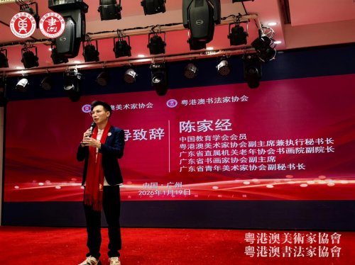 马踏春风启新程,笔墨传情聚湾区。2026年1月19日,粤港澳美术家协会、粤港澳书法家协会2025年会在广州隆重召开,来自粤港澳三地的书画界名家、协会领导及嘉宾齐聚一堂,以艺为媒共话传承创新,共谋湾区文化发展新篇。