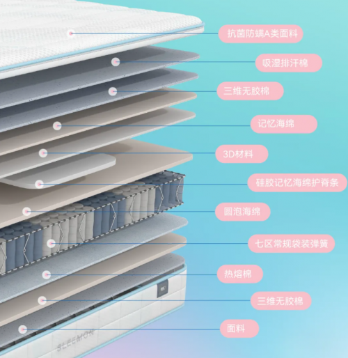 这款床垫的核心技术在于七区独立袋装弹簧系统。依据人体工程学原理,弹簧针对身体不同部位提供差异化支撑,特别是对腰椎区域进行了强化设计,在维持睡眠时脊柱的自然曲度。每个弹簧独立运作,有效吸收和隔离震动,当一方翻身或起身时,对另一侧的干扰显著降低,可以很好的实现互不干扰,有效睡眠。