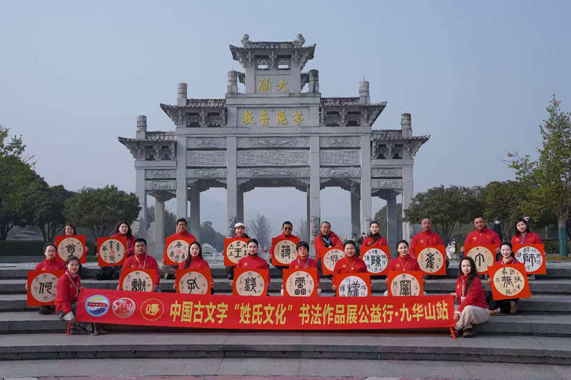 活动期间,来自文化界、艺术界的嘉宾与学员一行二十余人,以九华山深厚的文化积淀为课堂,开展了一系列内涵丰富的主题活动。核心行程包括在九华山庄重发“世界和平缘”,表达了人们对和谐世界的普遍向往;成功举办“中国古文字姓氏文化”公益书法巡展。让沉睡千年的汉字智慧在当代公共空间鲜活呈现,吸引了众多游客驻足欣赏。