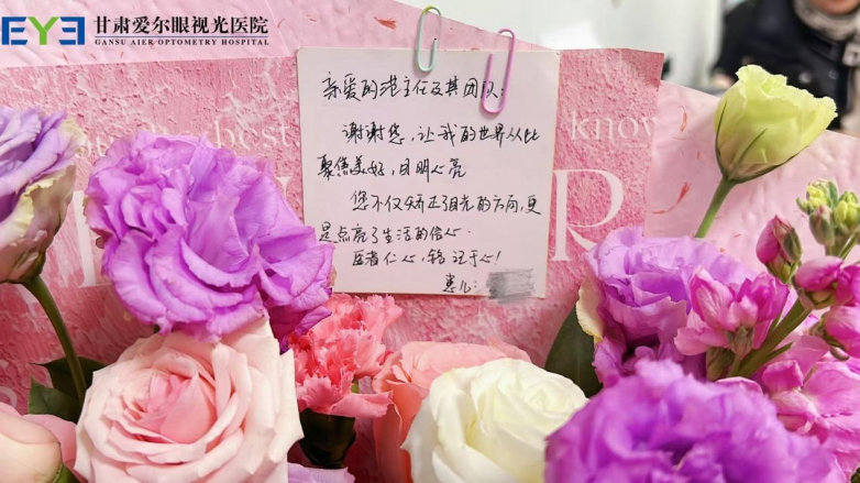 术后第一天复查,结果令人欣慰。检查光线下,王小明的双眼角膜映光点均已稳稳回归中心位置,手术实现了即时的解剖学正位。孩子父母紧锁的眉头终于舒展,而随后小明亲手送上的一束鲜花和卡片,更让这份欣慰升华为深深的感动。卡片上,孩子用真诚的笔迹写道:“谢谢您,让我的世界从此聚焦美好,目明心亮。您不仅矫正了目光的方向,更是点亮了生活的自信。医者仁心,铭记于心!”