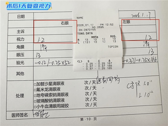 1月11日,手术在张海燕主任娴熟、精准的操作下顺利完成。术后次日复查,小谢的双眼视力均达到1.2,远超预期。小谢兴奋地说:“现在看什么都特别清楚!感谢张海燕主任让我能以更好的状态迎接高考,也更坚定地走向我的梦想之路。”