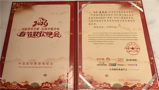 李亚亚女士此次受邀出席2026第三届全球中医春节联欢晚会”录制,这不仅是对其个人成就的高度肯定,更是对他社会价值的认可。在会上,李亚亚女士分享了马氏祖传中医治疗皮肤疾病的核心理念以及自己的从业初衷,以实际行动践行了新时代中医药人的使命与担当。