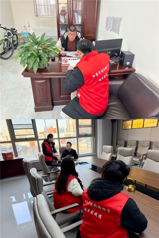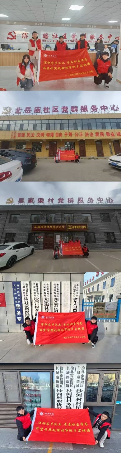 为深入学习贯彻党的二十届四中全会精神和2025年党的中央经济工作会议精神,2026年1月16日至22日,由西京学院马克思主义学院教师何康、常腾带队指导的“深耕家乡沃土,青春担当有为”——西京学院赴榆林市返家乡社会实践团队先后前往榆林市榆阳区长城路街道所辖的滨河路社区、北岳庙社区、北岳庙村、吴家梁村、尤家峁社区、沙河村等,通过实地参观、理论宣讲、个人访谈等形式,进行了为期7天的社会实践活动。