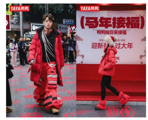 为满足不同消费群体的冬季穿搭需求,作为“国民羽绒衣橱”的鸭鸭羽绒服每到传统新年便会推出“春节幸运色穿搭”:CLEANFIT系列的明艳红、小剪刀系列的高奢红、户外风的深沉红、静奢风的淡粉红、靓丽的多巴胺粉、鲜艳瞩目的糖果红......鸭鸭羽绒服的货架上,各种风格的红色应有尽有,2025新款“长城系列”还推出了富有历史底蕴的烽火台赭石红色,深受国潮爱好者的欢迎。在鸭鸭羽绒服的陪伴下,无数消费者在冬季得以穿出各具特色的红红火火。
