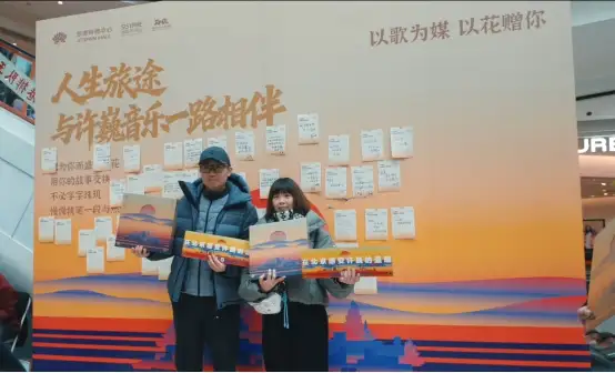 歌迷们将那些无法在短暂签名瞬间说完的话——青春的迷茫、成长的阵痛、生活的希望——浓缩成一句句歌词、一段段告白、一声声感谢,写满了整面墙。“人生旅途,与许巍音乐一路相伴”、“以歌为媒,以花赠你”、“在北京感受许巍的温暖”……这些字句交织在一起,形成了一幅集体情感的地图。