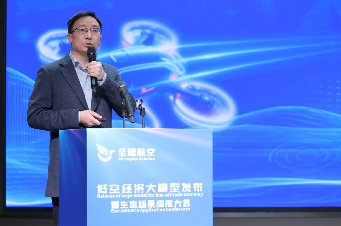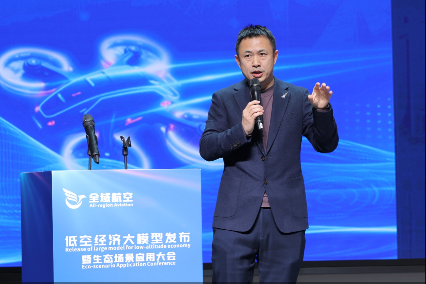 董事长曹洺介绍此次发布的低空经济大模型将为千行百业的低空应用提供全链路智能解决方案,从飞行路径规划到多场景协同调度,全方位提升低空运营效率与安全系数。