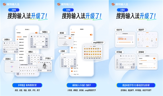 ·此外,鸿蒙版搜狗输入法提供拼音、语音、笔画等多种输入方式,并配备计算器、模糊音、剪切板及Emoji颜文字等辅助工具。你还可根据喜好调节键盘高度、字号大小与震动音效,打造更贴合个人习惯的输入体验。