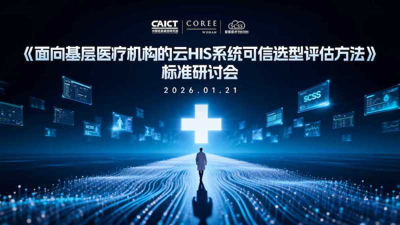 为充分发挥云计算、大数据等数字技术优势,推动数字技术与基层医疗健康服务深度融合,规范基层医疗机构云HIS系统选型流程,助力基层医疗信息化建设高质量发展,2026年1月21日,《面向基层医疗机构的云HIS系统可信选型评估方法》标准研讨会顺利召开。本次研讨会由工业和信息化部直属科研事业单位中国信息通信研究院与武汉科利医药有限公司联合牵头,汇聚多方专业力量共商标准体系构建。