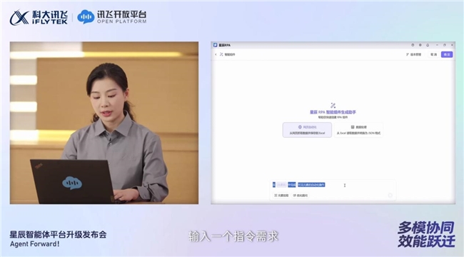 发布会现场,讯飞星辰智能体平台的RPA 执行能力迎来直观实测,一句指令即可实现自动化流程的快速搭建与落地,让现场观众亲眼见证 “数字双手” 的高效与便捷。