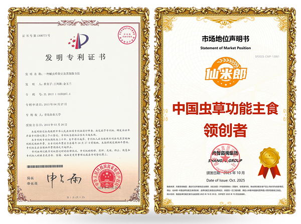 产品的卓越价值获得了市场的高度认可。尚普咨询集团已正式认证仙米郎为 “中国虫草功能主食创领者” (证书编号: SP2025-CMP-13861),充分肯定了其品牌在行业的标杆地位。