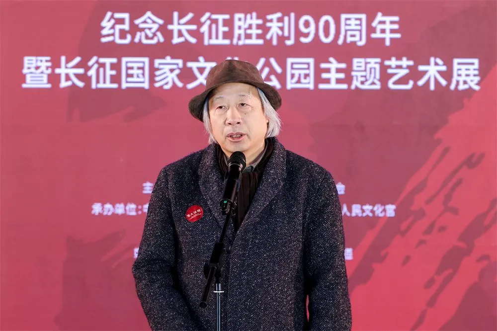 开幕式上,周庆富首先致辞。他指出,90年前的长征是中国共产党人理想信念的胜利,是彪炳史册的伟大征程。为赓续红色血脉,中国艺术研究院于2025年启动“长征国家文化公园主题创作实践活动”,组织百余名艺术家重走长征路,深入生活、扎根人民,最终创作遴选近120件(组)作品,形成此次主题鲜明、艺术多元的展览。他表示,本次展览既是对革命先辈的深切缅怀,也是对长征精神的当代诠释,体现了艺术工作者“以人民为中心”的创作导向和使命担当。