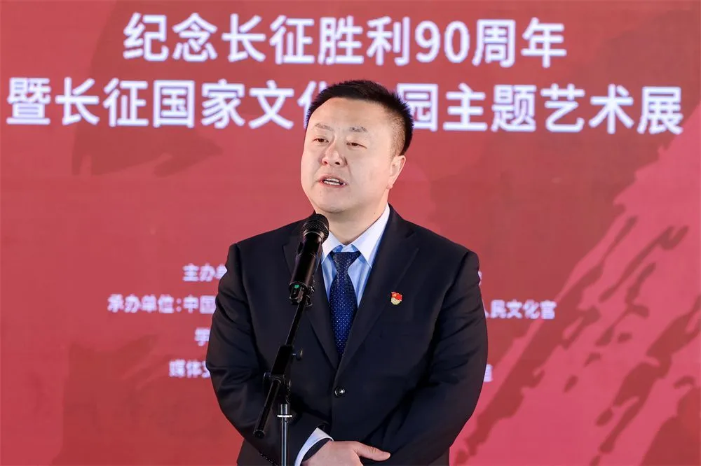 潘义奎在致辞中对展览开幕表示热烈祝贺。他指出,近年来围绕国家文化公园的主题创作已成为艺术界回应时代、凝聚共识的重要脉络。中国艺术研究院连续组织实施长江、长征等国家文化公园创作项目,展现出国家级艺术机构的自觉与担当。中国美术馆也长期聚焦重大主题,系统收藏并展示反映时代精神的经典作品。他强调,美术馆与艺术机构应共同推动主题性创作从“高原”迈向“高峰”,让艺术成为传递精神、滋养人心的重要载体。